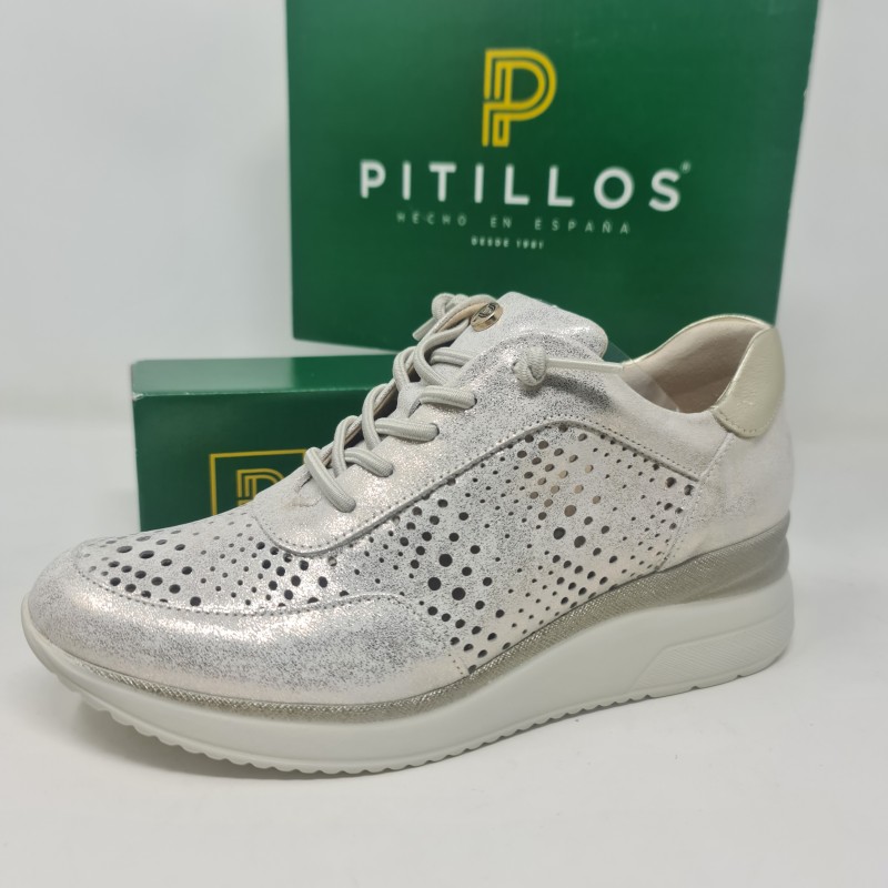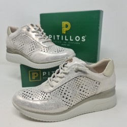 ZAPATO PITILLOS TIPO DEPORTIVO TIPO CASUAL MODELO 10430 EN PIEL CIERRE CORDONES ELASTICOS PLANTILLA EXTRAIBLE ALTURA DE CUÑA 5 CM Y 2 CM DE PLATAFORMA FABRICADOS EN ESPAÑA COMODIDAD Y ESTILO