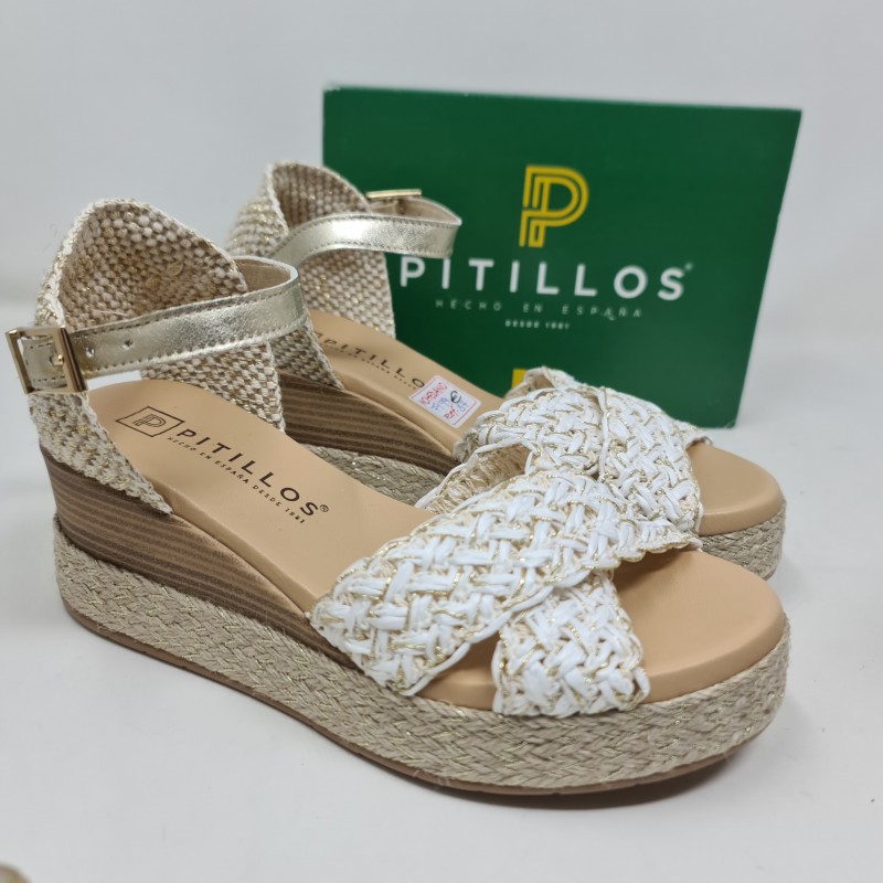 SANDALIA CRUZADA , MODELO 10593, MARCA PITILLOS, CIERRE DE HEBILLA, PALA CRUZADA, PLANTILLA ACOLCHADA, CUÑA DE 6 CM, PLATAFORMA DE 3CM, FABRICADO EN ESPAÑA. NUMERACIÓN DESDE EL 36 AL 40.