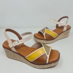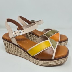 SANDALIA PIEL JORDANA EN CUÑA POLIURETANO MOD 4511C PLANTILLA DE GEL DOBLE DENSIDAD 0,5CM DE GROSOR ALTURA DE CUÑA 6CM Y 2CM DE PLATAFORMA FABRICADO EN ESPAÑA PISANDO LAS NUBES