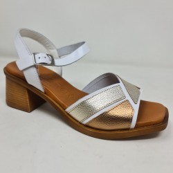 SANDALIA BICOLOR MOD 4511T JORDANA CIERRE HEVILLA PLANTILLA DE GEL SUELA POLIURETANO TACON 5CM PLATAFORMA 1CM FABRICADO EN ESPAÑA PISANDO LAS NUBES