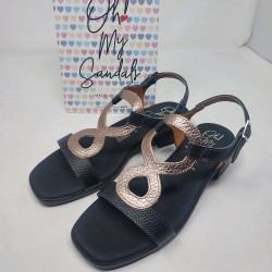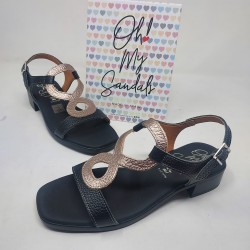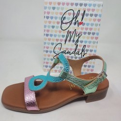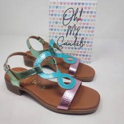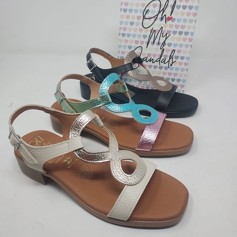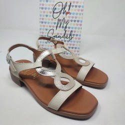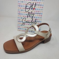 SANDALIA PIEL CON ADORNO DE CÍRCULOS EN EL EMPEINE. SUJECCIÓN CON HEBILLA. PLANTILLA DE GEL. PISO DE GOMA MUY LIGERO. ALTURA DEL TACÓN 3,5 CM.MARCA OH MY SANDAL. HECHO EN ESPAÑA.