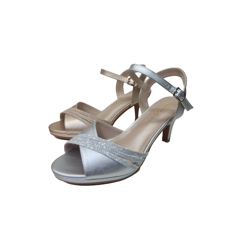 SANDALIA FIESTA BRILLOS, MOD. C-400, MARCA PRESTIGIO, CON TIRAS CON BRILLOS EN LA PALA, CIERRE CON HEBILLA, TACON 8 CM, PLATAFORMA 1.5 CM, PLANTILLA DE PIEL, ACOLCHADA, SUELA DE GOMA, NUMERACION DESDE EL 35 AL 40.