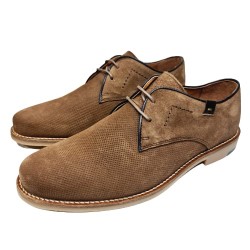 ZAPATO CORDÓN PICADO EN SERRAJE, TODO PIEL, FORRO Y PLANTILLA DE PIEL, PISO DE GOMA, HECHO EN ESPAÑA.