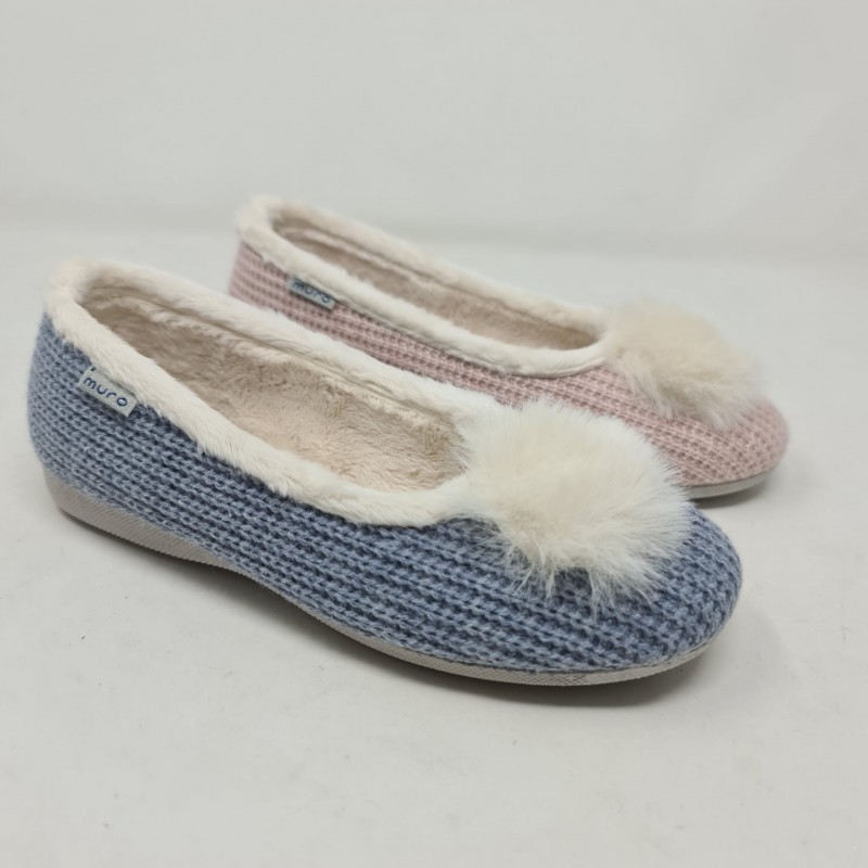 BAILARINA PUNTO, MODELO 4012, MARCA MURO, ADORNO PALA POMPON , FORRO DE SUAPEL, SUELA DE CAUCHO, PALA DE PUNTO, NUMERACION DESDE EL 35 AL 41. FABRICADA EN ESPAÑA.