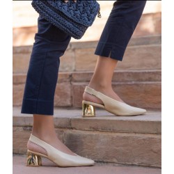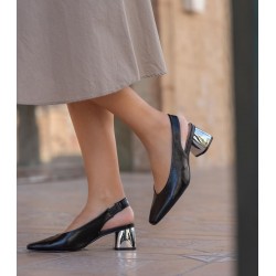 SALÓN DESTALONADO CON PLANTILLA ACOLCHADA, TACÓN METÁLICO, ALTURA DE TACÓN 4,8 CENTÍMETROS, PISO DE GOMA. SUJECCIÓN CON ELÁSTICO LATERAL.